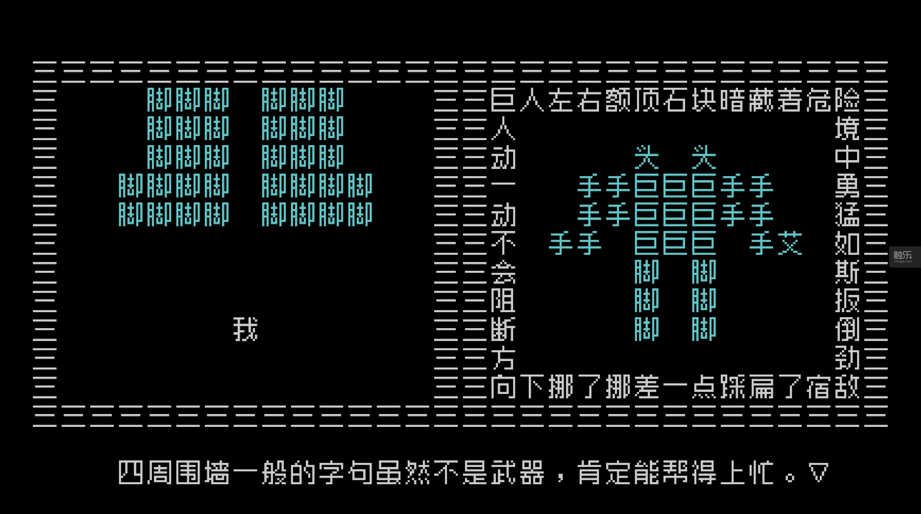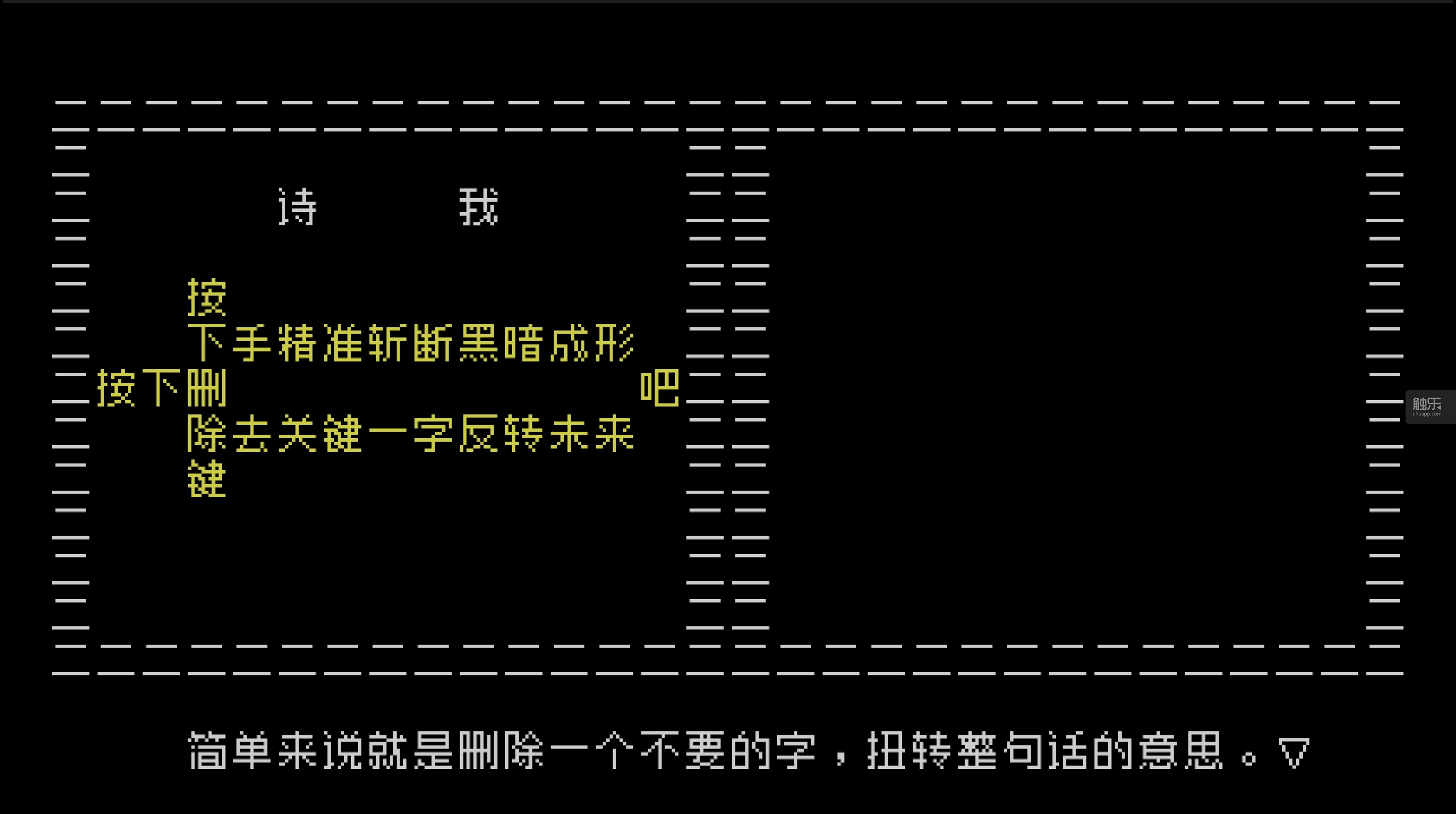 除了解谜过程本身充满创意之外,游戏纯靠文本就制造出了许多种有趣的演出效果。恢弘的音乐、充满反转的剧情,明明也是由字组成却莫名产生牵绊的NPC等等,都能让玩家体验到十分反传统的“勇者斗恶龙”剧情。谜题之外,这些设计也让玩家佩服制作者天马行空的想象力。