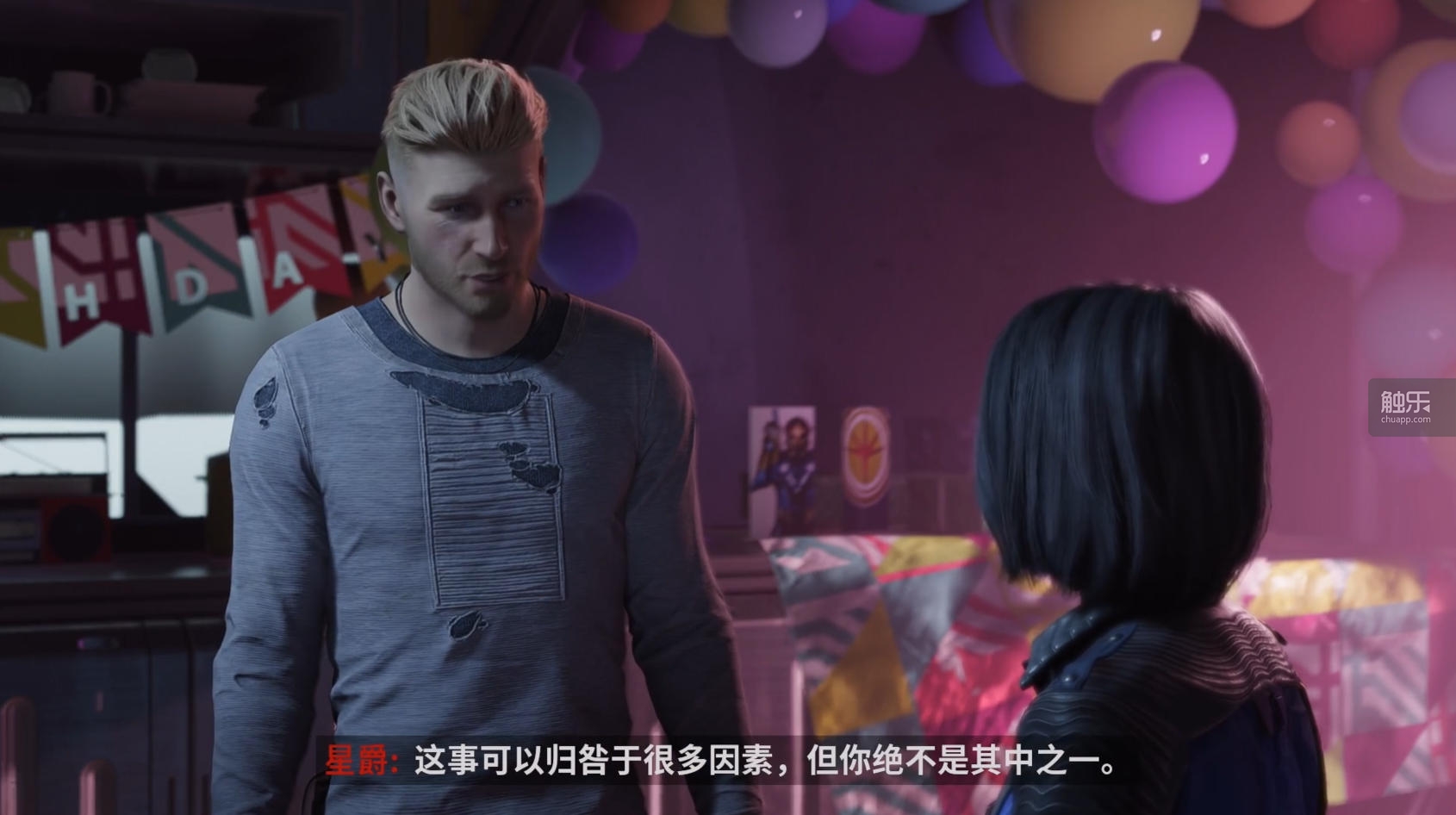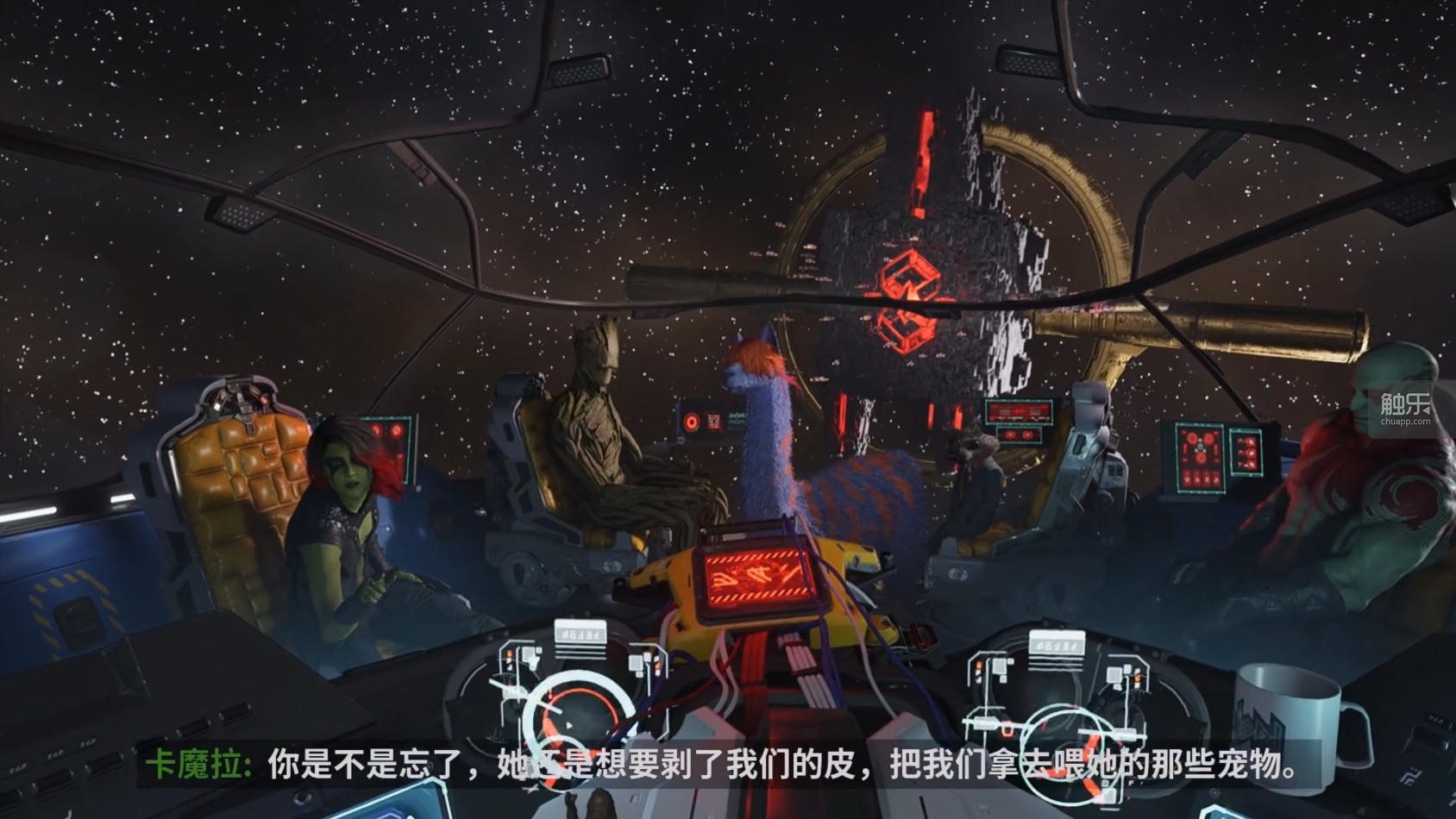 除了游戏类型本身所强调的动作战斗内容,本作全力展现了“银河护卫队”独特的幽默风格和团队氛围,让玩家时刻感受到团队的话痨与感情。开场10分钟左右,从主角登上米兰号飞船开始,众角色之间的言语交锋几乎没停过,喜感的对话令人置身经典情景喜剧,而少量的真情流露又回收了之前幽默对话留下的伏笔,形成复杂而美好的剧情体验,愉悦且感人。