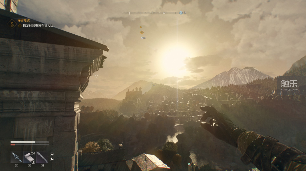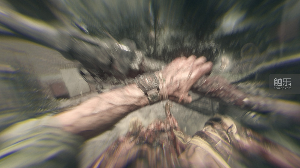 《困兽》的攀爬点判定很严谨,给玩家带来的沉浸感很强。每次上到一个抓握点后,克兰都会停顿一下,辅以真实的音效,再爬上去,这种符合现实逻辑的设计十分出色。值得一提的是,在主线的一项爬塔任务中,攀爬中途还会播放起游戏主题曲——悬挂在塔上的克兰一步一脚印,慢慢往高处爬,当他终于爬到塔顶,粗喘一口大气,看向远处的夕阳,一种强烈的“末世感”油然而生。