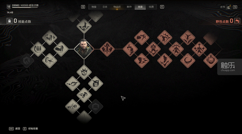 相比之下,《困兽》的系统很“精简”。能够看出,Techland对游戏的玩法进行了大幅度简化,最直观的就是本作短到连二选一机会都不多的角色天赋树,以及依靠主线进度线性解锁的野性之力“伪天赋树”。